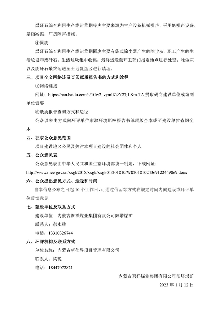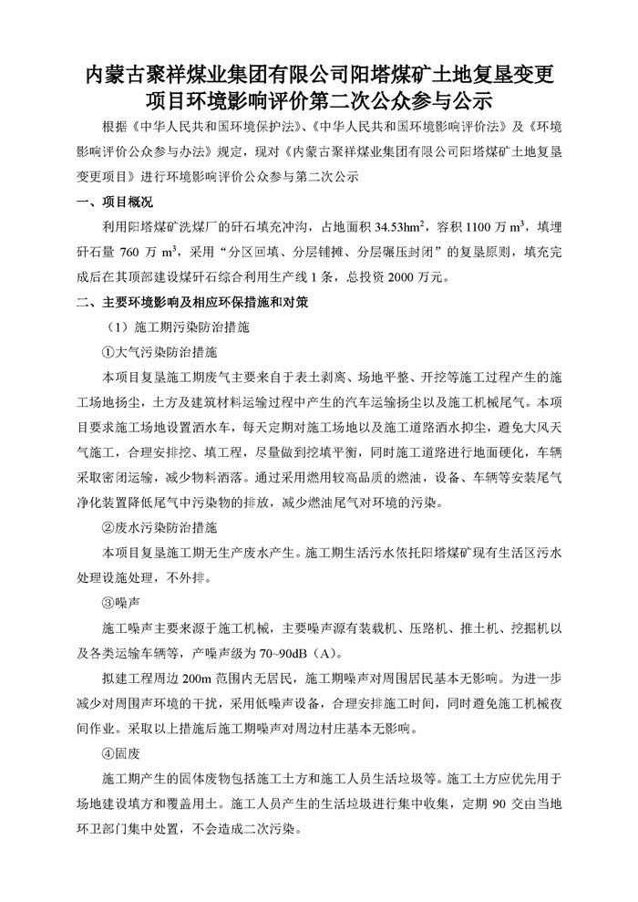 內(nèi)蒙古聚祥煤業(yè)集團(tuán)有限公司陽(yáng)塔煤礦土地復(fù)墾變更項(xiàng)目第二次環(huán)境影響評(píng)價(jià)公示
