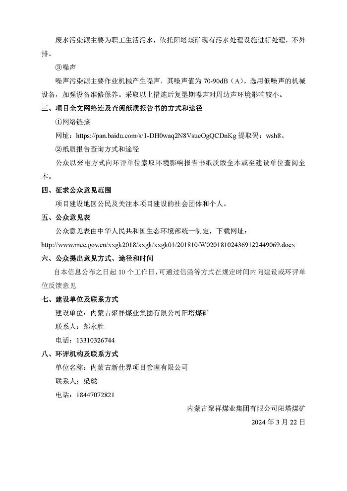 內(nèi)蒙古聚祥煤業(yè)集團(tuán)有限公司陽(yáng)塔煤礦沉陷區(qū)生態(tài)治理項(xiàng)目環(huán)境影響評(píng)價(jià)第二次公眾參與公示